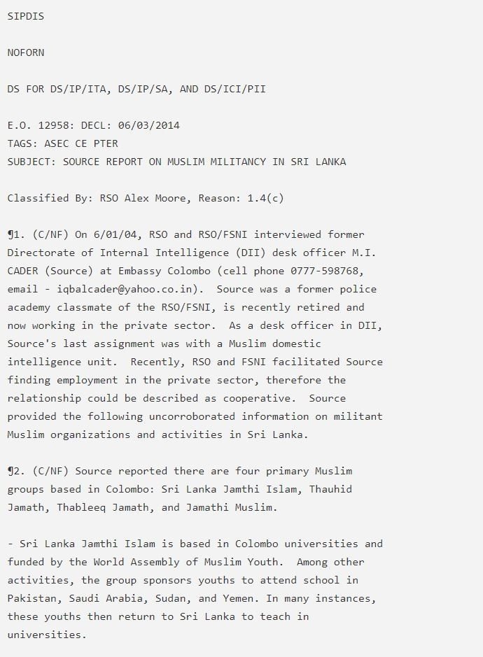 சிறிலங்கா அரசாங்கத்திற்கும் தமிழீழ விடுதலைப்புலிகளுக்கும் இடையிலான அமைதி உடன்படிக்கையின் போது இசுலாமிய அடிப்படைவாதக் கும்பலான “ஜிஹாத் குழு” குறித்து விடுதலைப்புலிகள் சிறிலங்கா அரசின் கவனத்திற்குக் கொண்டுவந்திருந்தனர். “ஜிஹாத் குழு” குறித்த செய்திகளைச் சிறிலங்கா அரசும் இசுலாமிய அரசியல்வாதிகளும் மறைத்து வந்த நிலையில், போர்ப்பயிற்சி பெற்ற “ஜிஹாத் குழு” வின் மேல்மட்ட உறுப்பினர்கள் பலர் மூதூரில் வைத்து அழிக்கப்பட்டனர்.