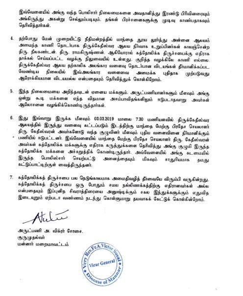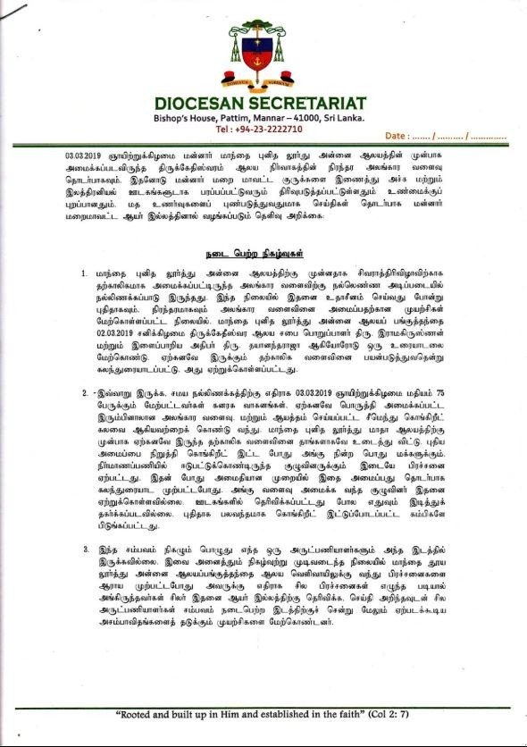 3. மன்னார் மறைமாவட்ட ஆயர் இல்ல அறிக்கை