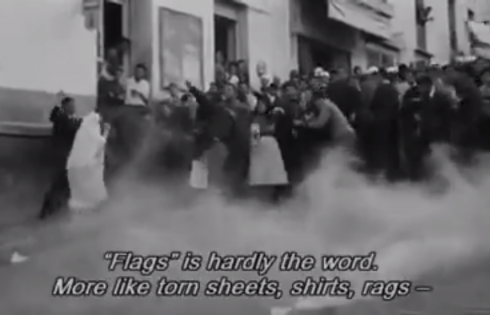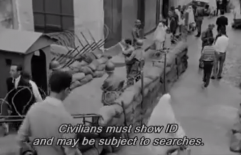 பிரான்சிய அதிகாரத்திற்கும் விடுதலை இயக்கத்திற்குமிடையே சிறிது சிறிதாக மூண்டுகொண்டிருந்த போர், அல்ஜீரியக் குடியிருப்பில் காவல்துறையினர் குண்டுவைத்து, அல்ஜீரியர்களின் படுகொலையின் எண்ணிக்கையின் தொடக்கம் எழுதப்படுகிறது. முள்வேலிகளும் சோதனைச் சாவடிகளும் ஊரடங்குச் சட்டங்களும் மக்களை முடக்க முயல்கின்றன. முள்வேலிகளையும் முள்வேலிக்குள்ளால் உடல் தடவ விட்டு போகும் அல்ஜீரிய மக்களைத் திரை பேசுகையில் எம்மைச் சூழ்ந்திருந்த முள்வேலிகளும் மண் அணைகளும், முழத்துக்கு முழம் நீட்டிக்கொண்டிருந்த துப்பாக்கி முனைகளும் இரவுகளை முடக்கிய ஊரடங்குச் சட்டங்களும் மனத்திரையில் பேசின.