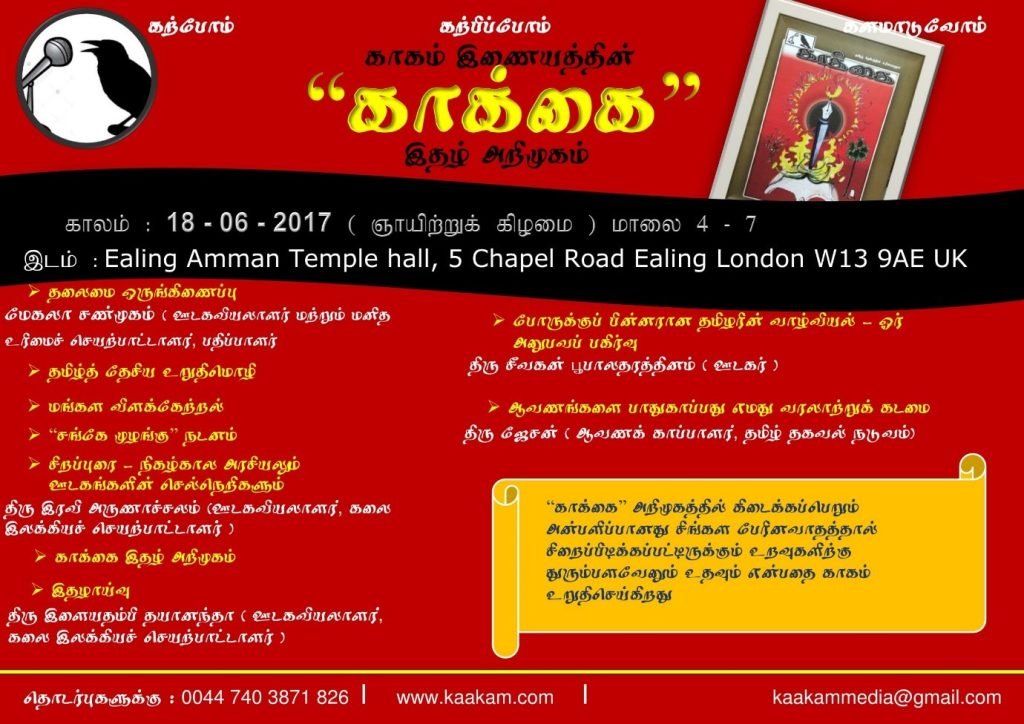 லண்டன் Ealing Amman Temple hall இல் நாளை (18-06-2017) மாலை 4 மணிக்கு ஒன்றுகூடுவோம் வாருங்கள்!! June 17, 2017 Admin அறிக்கைகள்